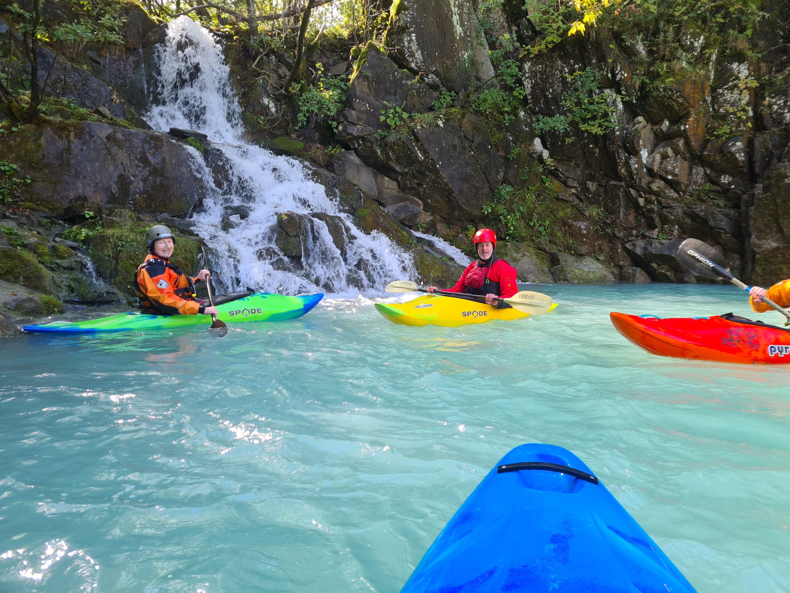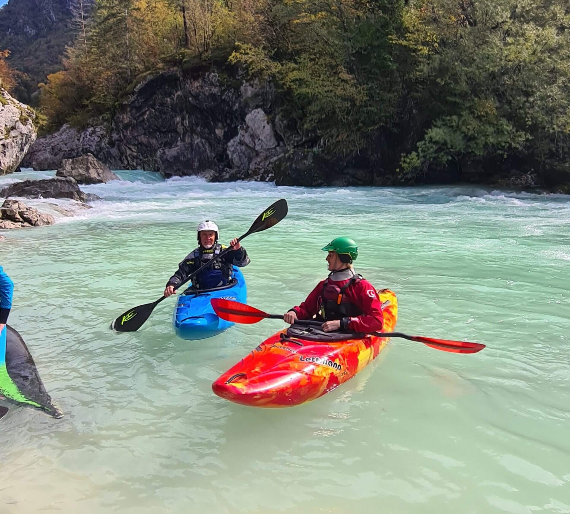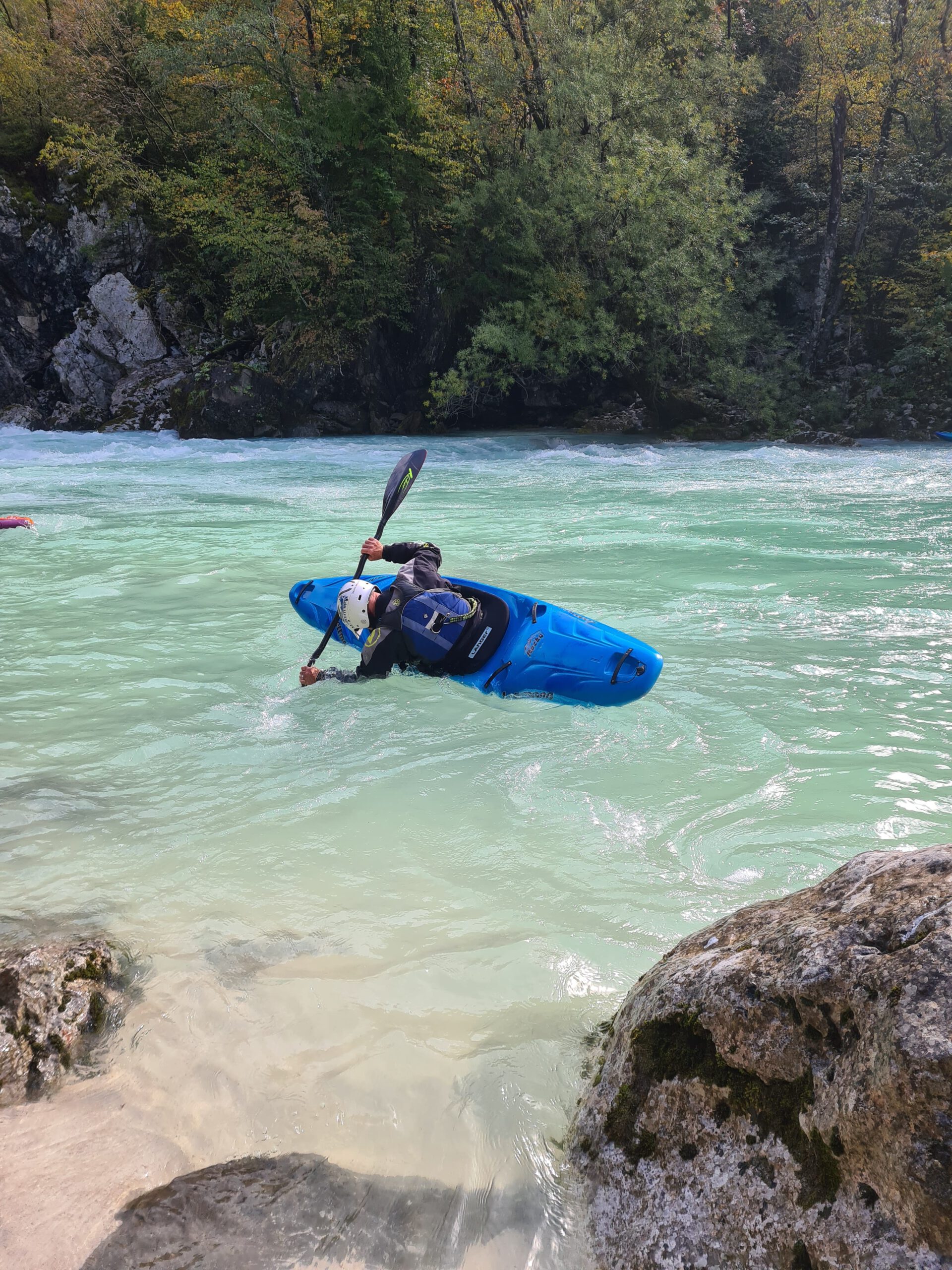 - Sie erhalten das komplette Material für den jeweiligen Kurs ausgeliehen (Boot, Paddel, Spritzdecke, Helm, Schwimmweste, Schuhe, Neoprenanzug)