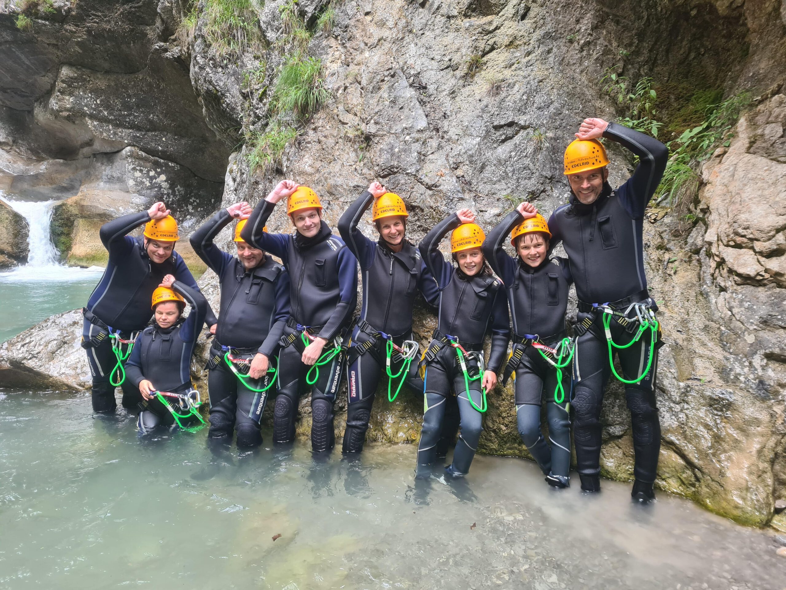 Führung durch geschulte Schluchtenführer; Leihausrüstung mit Canyoning-Gurt, Neoprenanzug, Helm und Canyoning-Schuhe.